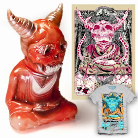 That concept has finally reached the toy world with the newest Alavaka release from Devils Head Productions and Scarecrowoven.  Both artists painted up the figures, while the latter's screen print and companion tshirt make up some incredible bundle deals.  All this will be available Friday, March 20th from http://devilsheadquarters.storenvy.com and http://scarecrowoven.bigcartel.com.